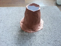 5. Empezamos a dar forma al volcán con la arcilla, dejar que se seque al menos un par de días.